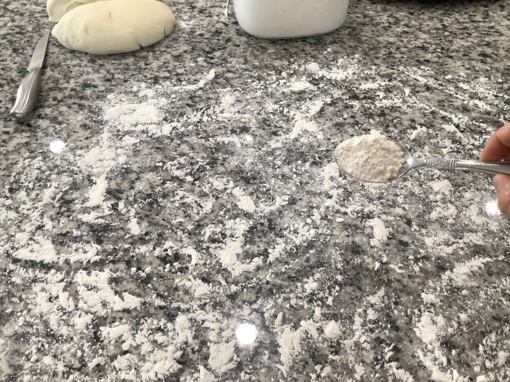 Next, find a large, clean area on your countertop and liberally cover it with flour.