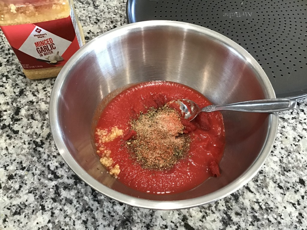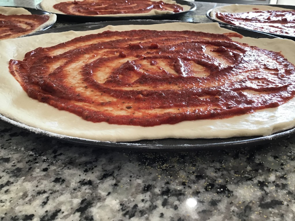 Notes: If you don’t have a pizza pan, you can still make pizza! We’ve made rectangular pizzas on cookie sheets before!