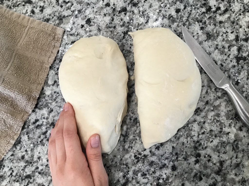 Once you’re dough is ready, take a sharp knife and divide it in half.