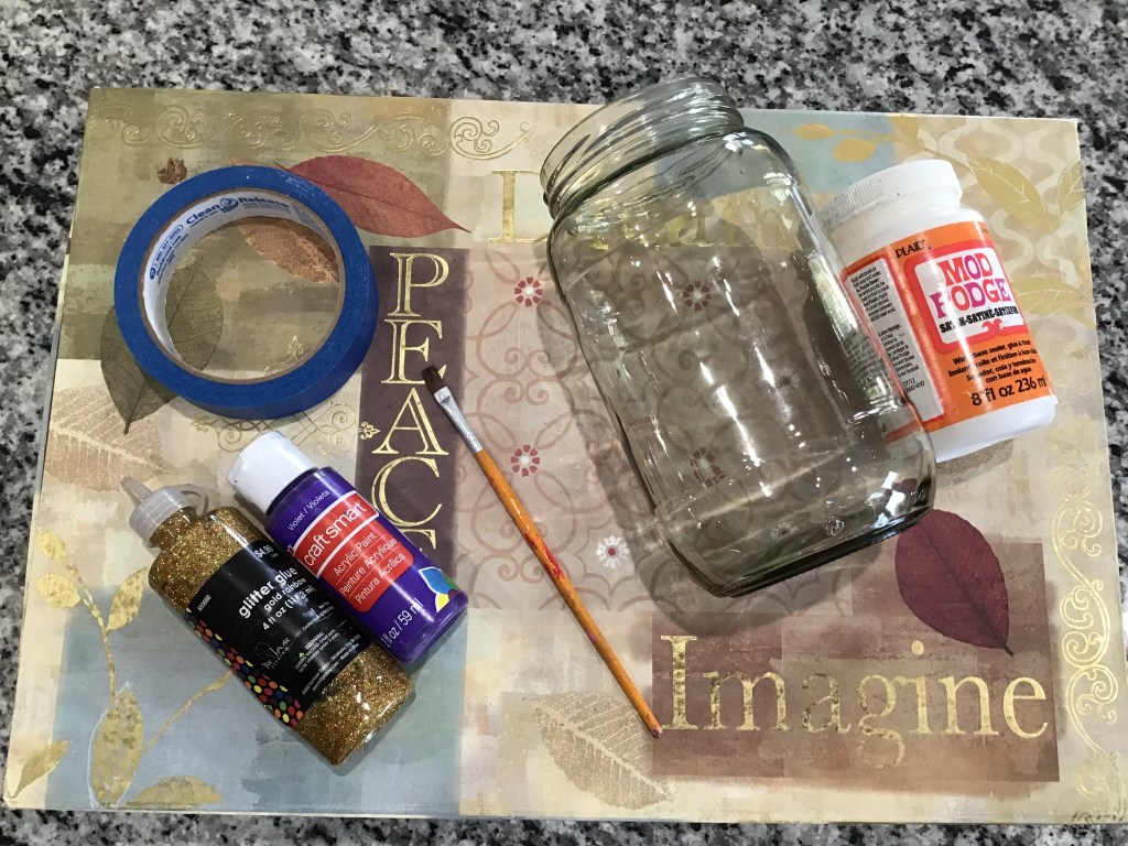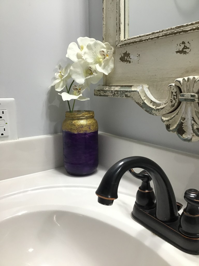 After two more coats of purple and glitter, things were starting to look a lot better. All that was left to do was seal the paint to help prevent chipping. So I pulled out one of my best friends—Mod Podge—and put a nice coat of that on.