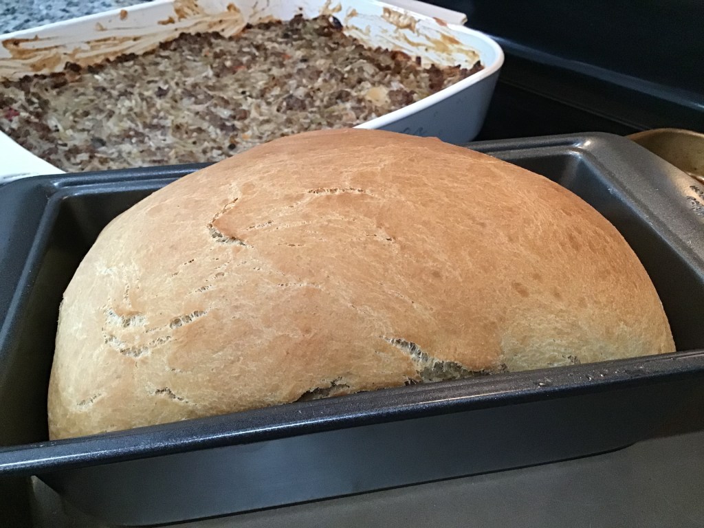 The recipe is written to make two loaves, but we never really have the need for two, so we cut the recipe in half. So to save you the math: