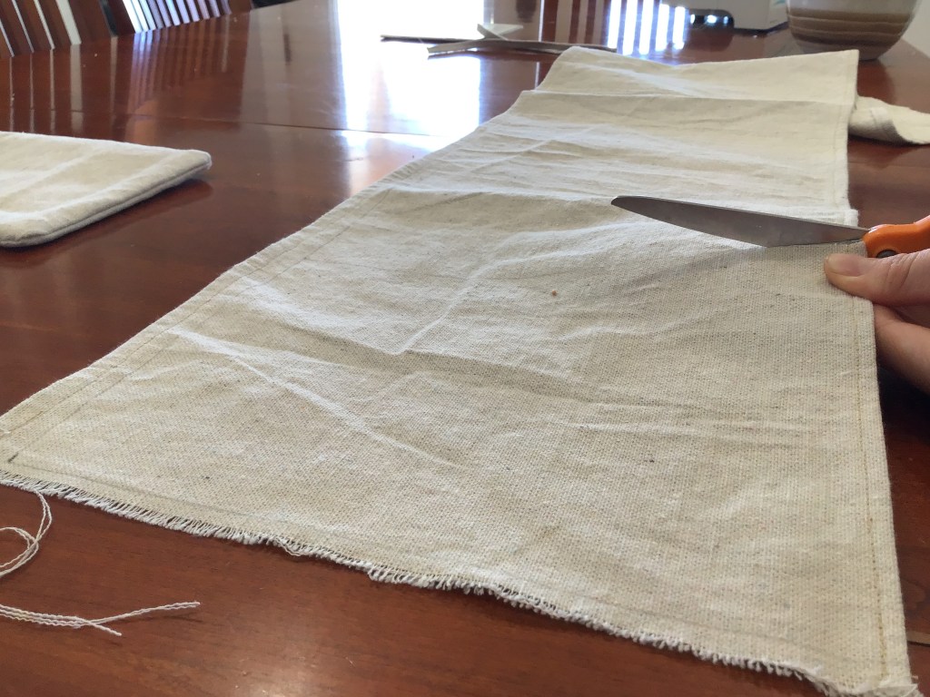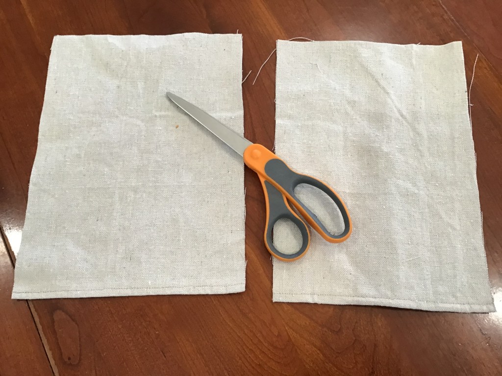 Start by measuring and cutting out two 9 1/2 in. by 7 in. pieces of canvas.