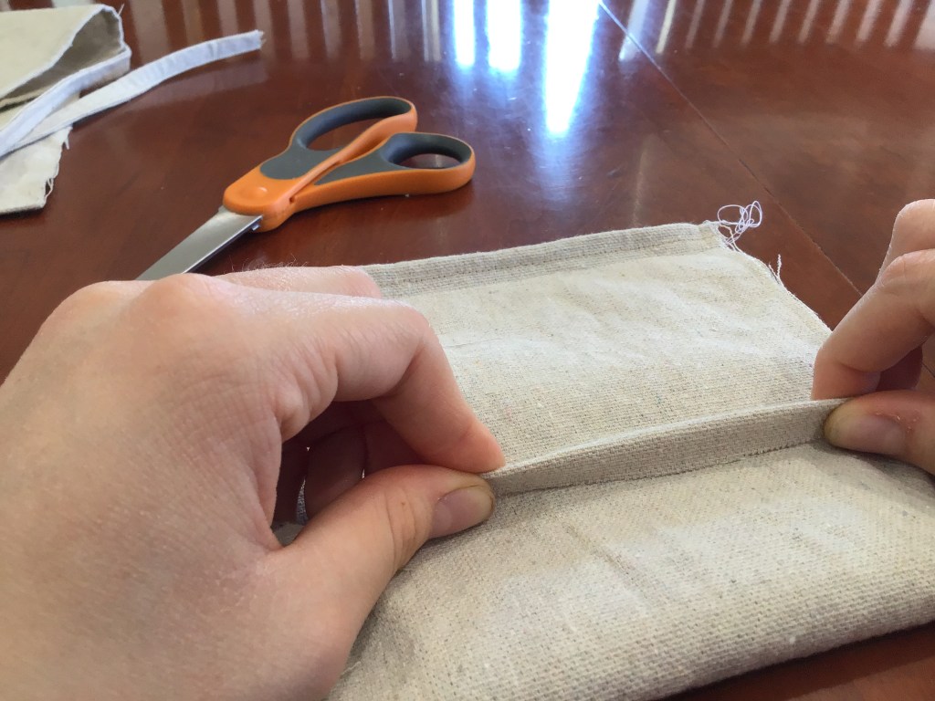 Once the folding’s done , it’s time for the last seam! π Sew a 1/4 in. seam all around the folded edge, being careful not to sew the bag shut.