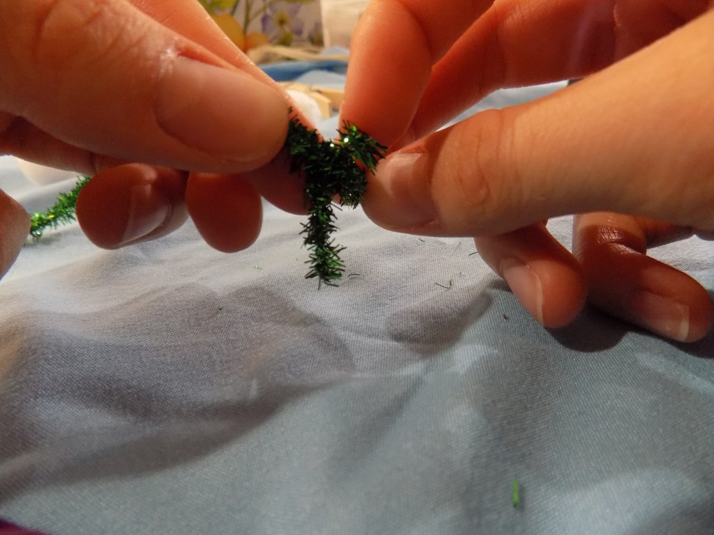And bend the smaller pipe cleaner piece around the right or left side of the bigger piece (if using ribbon, just glue the smaller piece on):