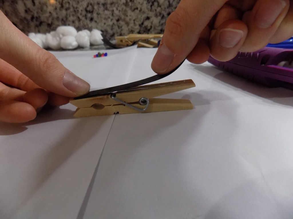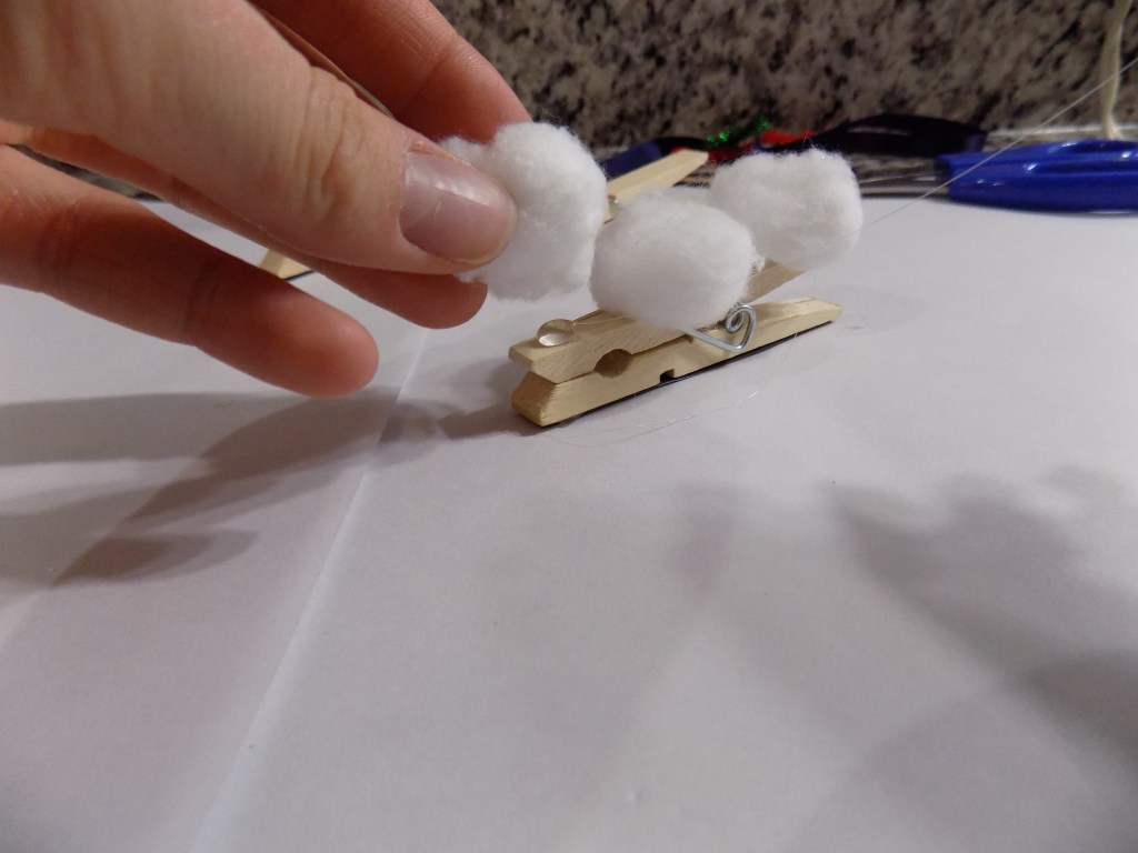 Glue 3 of your balls onto the non-magnetic side of the clothespin…
