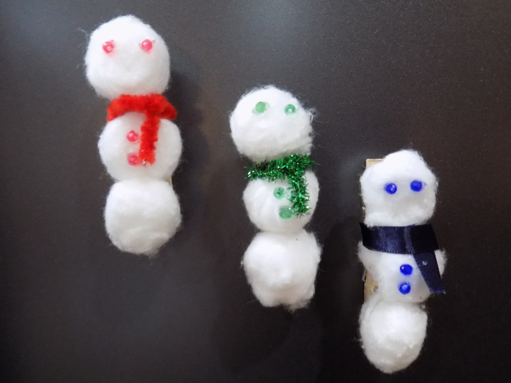 Here’s a fun craft to make with kids this winter! They will love designing and creating their own snowmen; and when they’re done, they get to admire their handiwork on the fridge! (Don’t worry adults–you’ll love this craft too! π β€ )