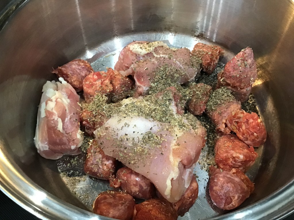 I will note here–you don’t have to use the meats I’m using in the recipe here; you can use any kind of meat you want! It’s basically a flavoring agent, so the experimentation possibilities are endless!
