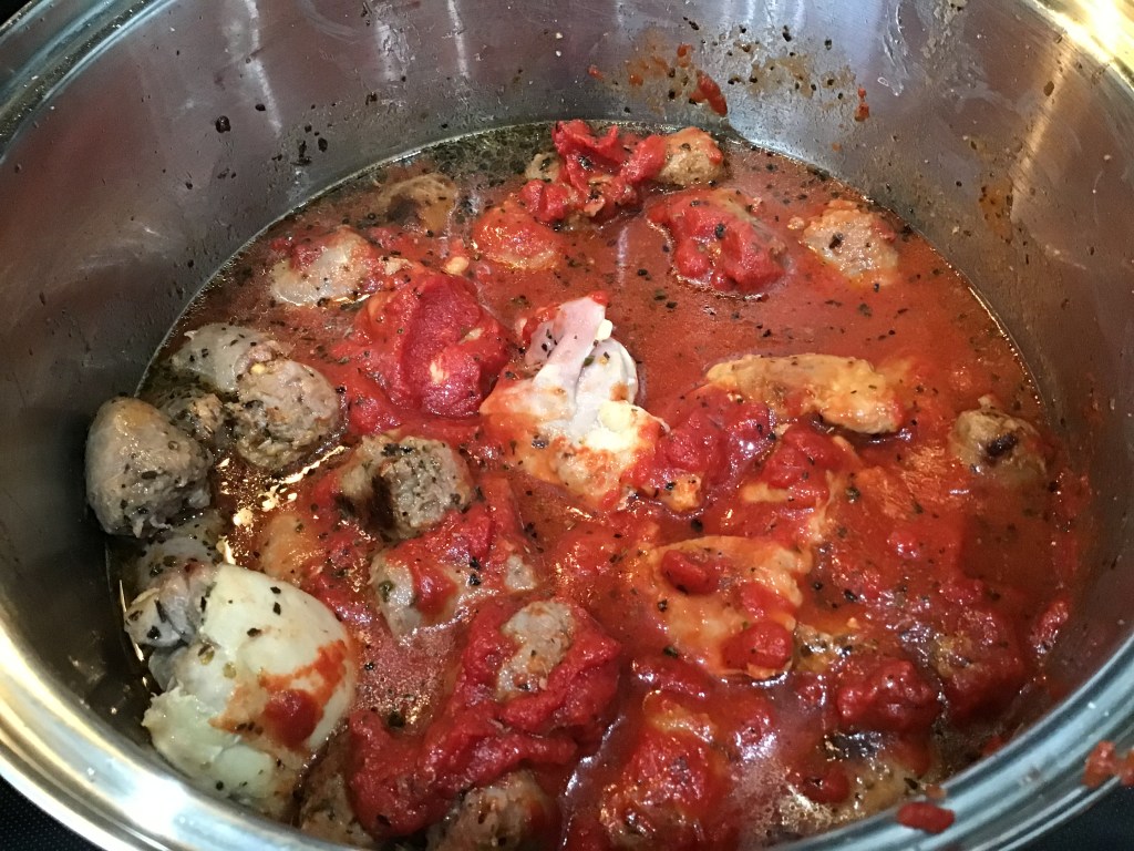 Once it’s done simmering, pour in your diced tomatoes and tomato sauce. Simmer for another 2 1/2 to 3 hours…