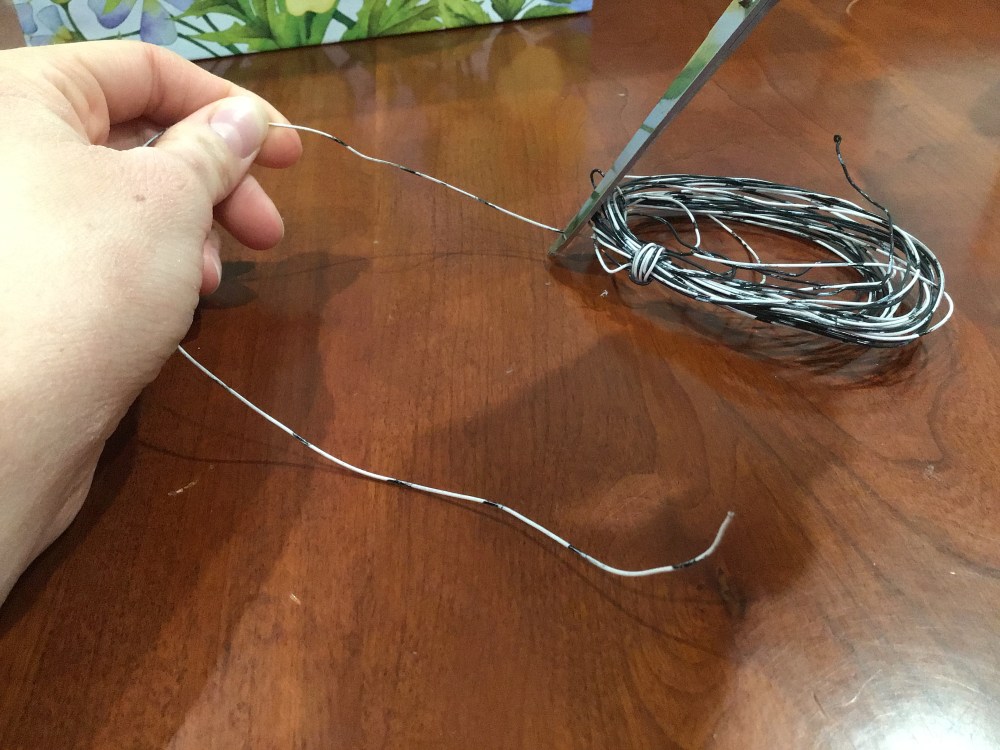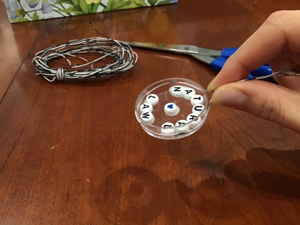 While the glue’s drying, snip off enough wire to circle around your pendant about two times (doesn’t have to be precise, just an estimate π ).