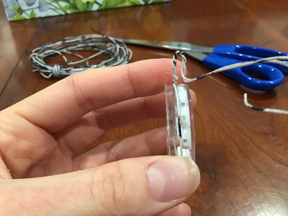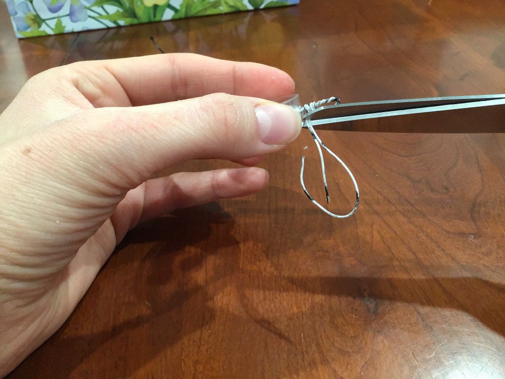 And begin forming the hanging loop! π You’ll want to bend your twisted end over…