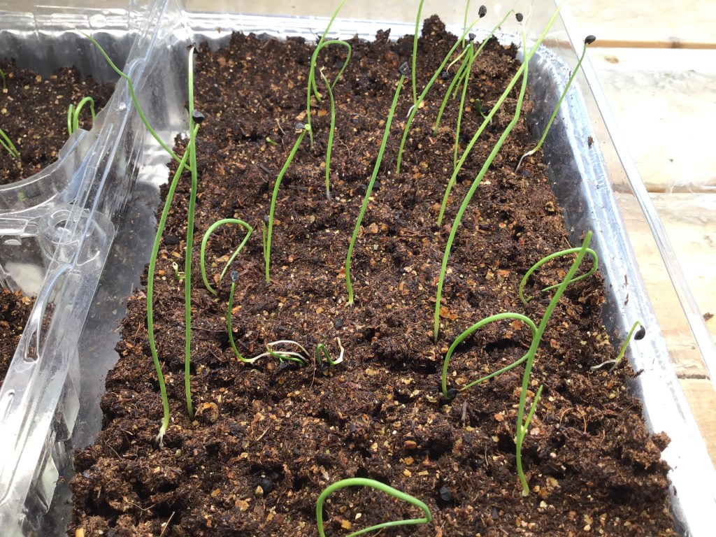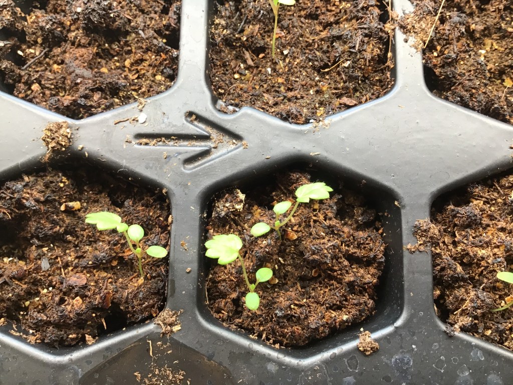 Here’s our cute little baby Alpine strawberries… You can see that we’re using seed cell trays for them, but there’s tons of other options for planters too!
