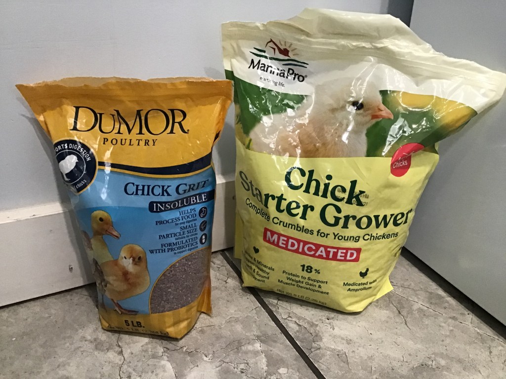Once you’ve got a brooder picked out, you’ll need a feeder, waterer, chick food, and chick grit (little pebbles to help them digest their food).