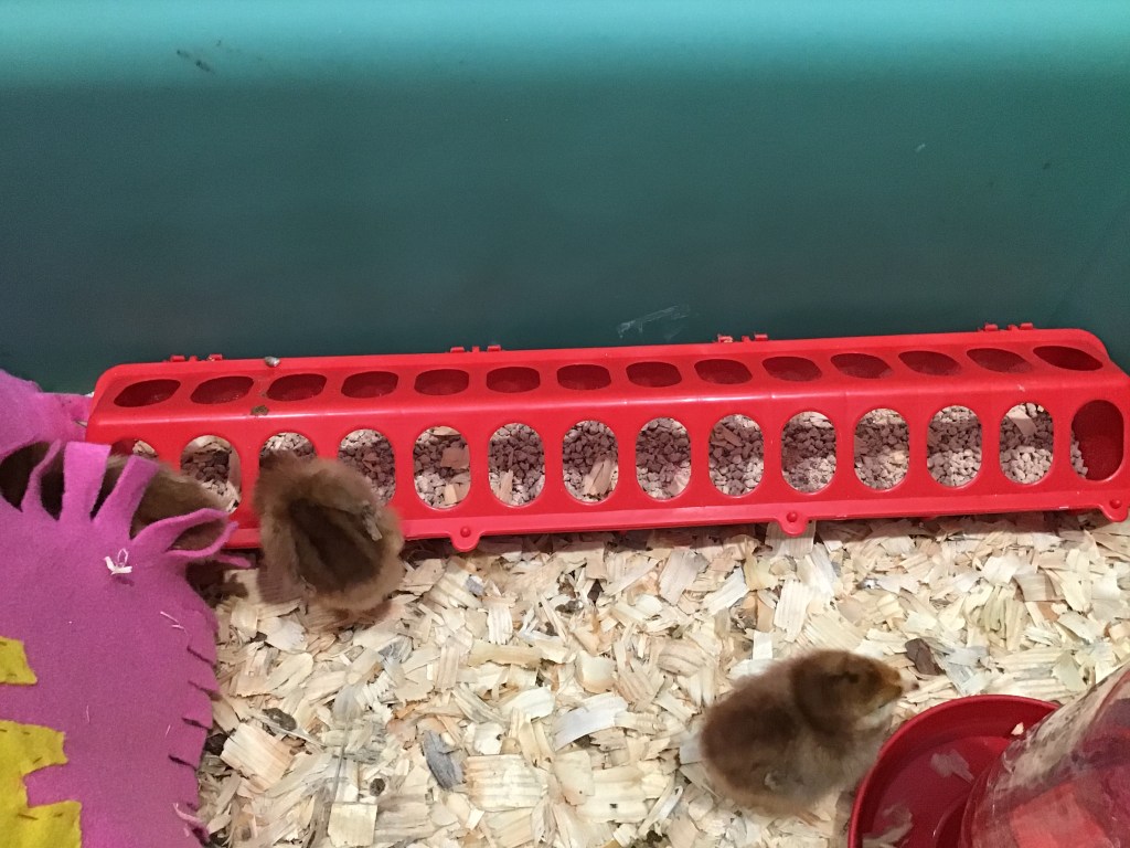 When you first get the chicks, you may want to wait to use the feeder for the first day and use a paper plate instead to make it a little easier for them.