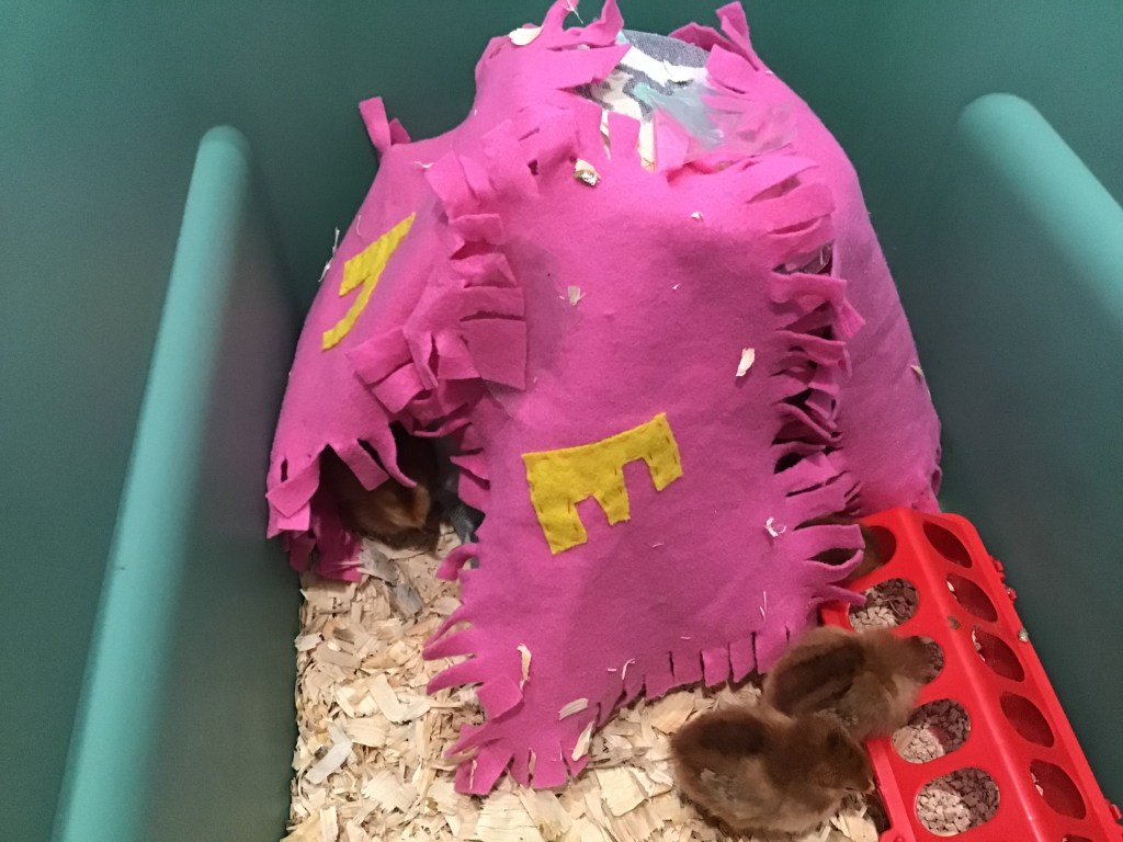 I was a bit worried my alternative heat source wouldn’t be enough…but the chicks are thriving! I am very pleasantly surprised. I also have their brooder positioned in front of a heater vent in our laundry room, so that’s probably helping too.