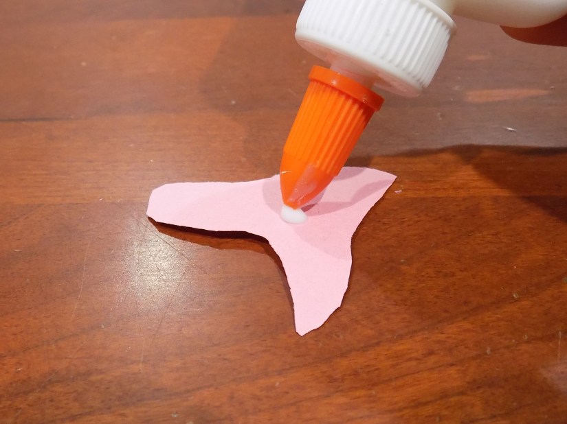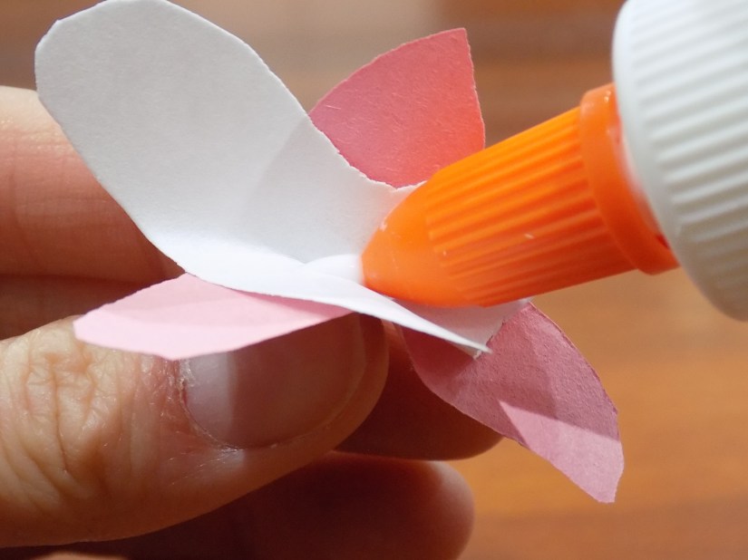 Next, take a pink flower shape and put a dot of glue in the middle.