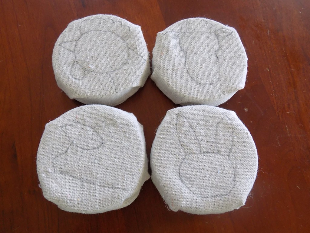 Now that you’ve made your little frames, it’s time to let your creative side shine! You could draw letters on them to form a word, glue fabric flowers on them, embroider them, you name it. πŸ˜€ I decided to make farm animal silhouettes.